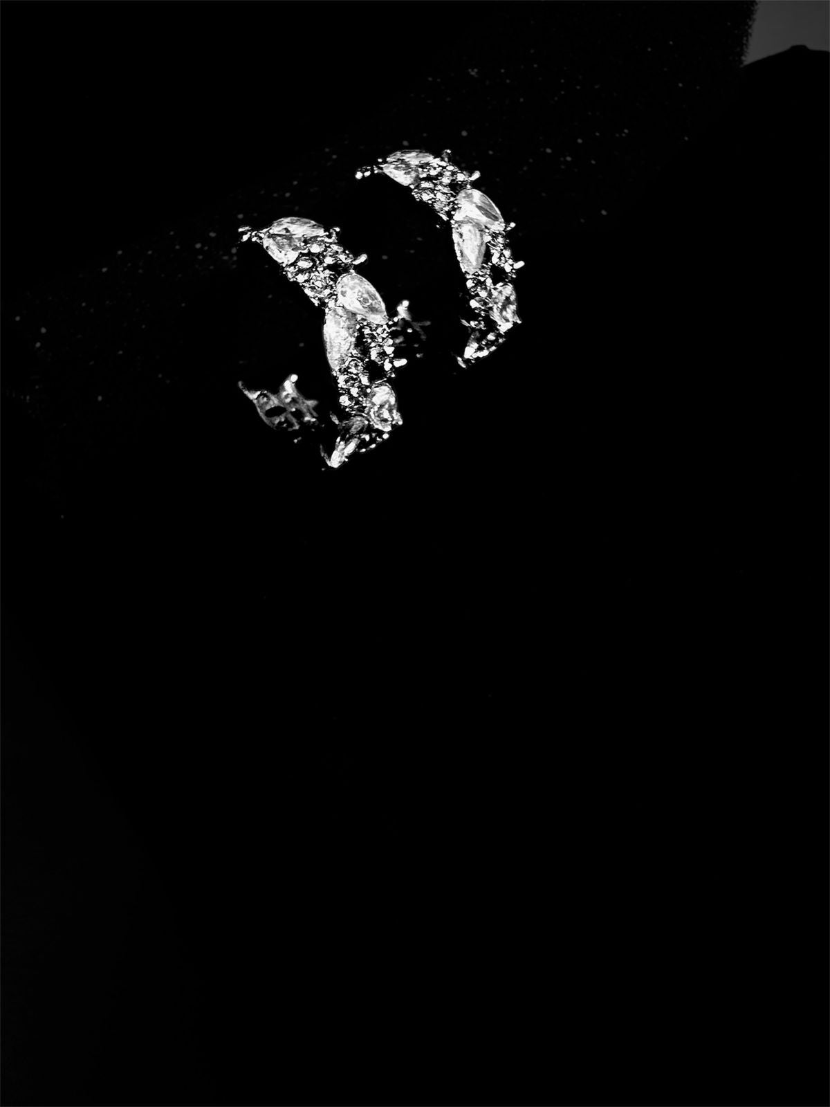 A Pair Of Elegant And Luxurious Circular Earrings For Ladies, Exquisitely Embedded With Sparkling Zirconia, Perfect For Engagement, Wedding, And Parties.